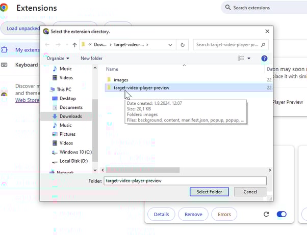 - Please reach out to support@target-video.com if you have any questions or problems with extension.